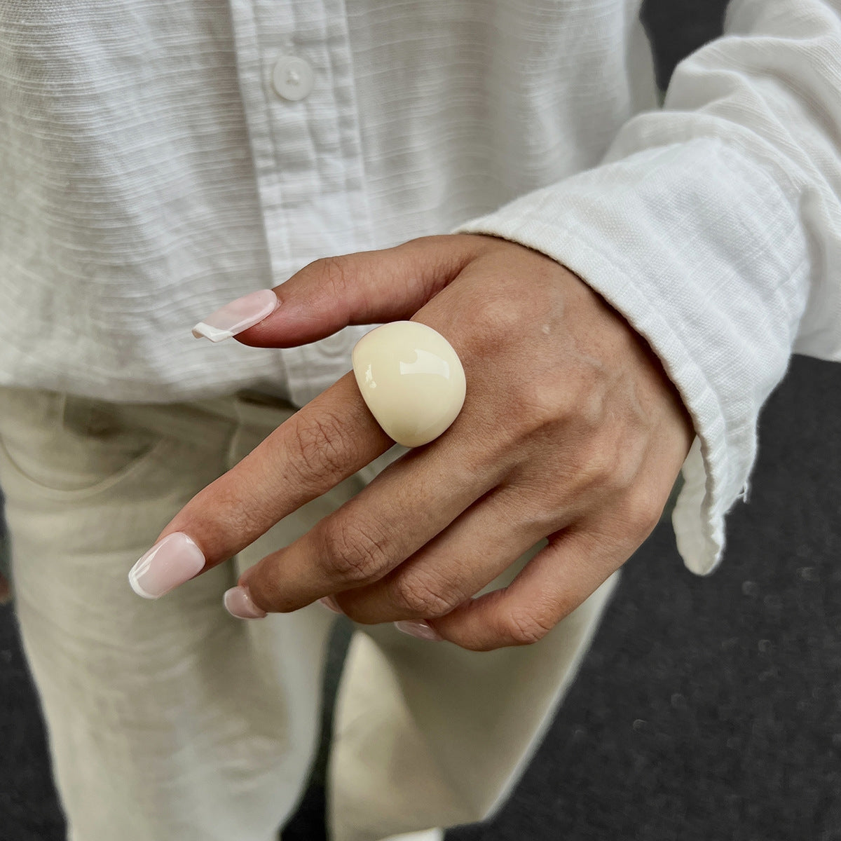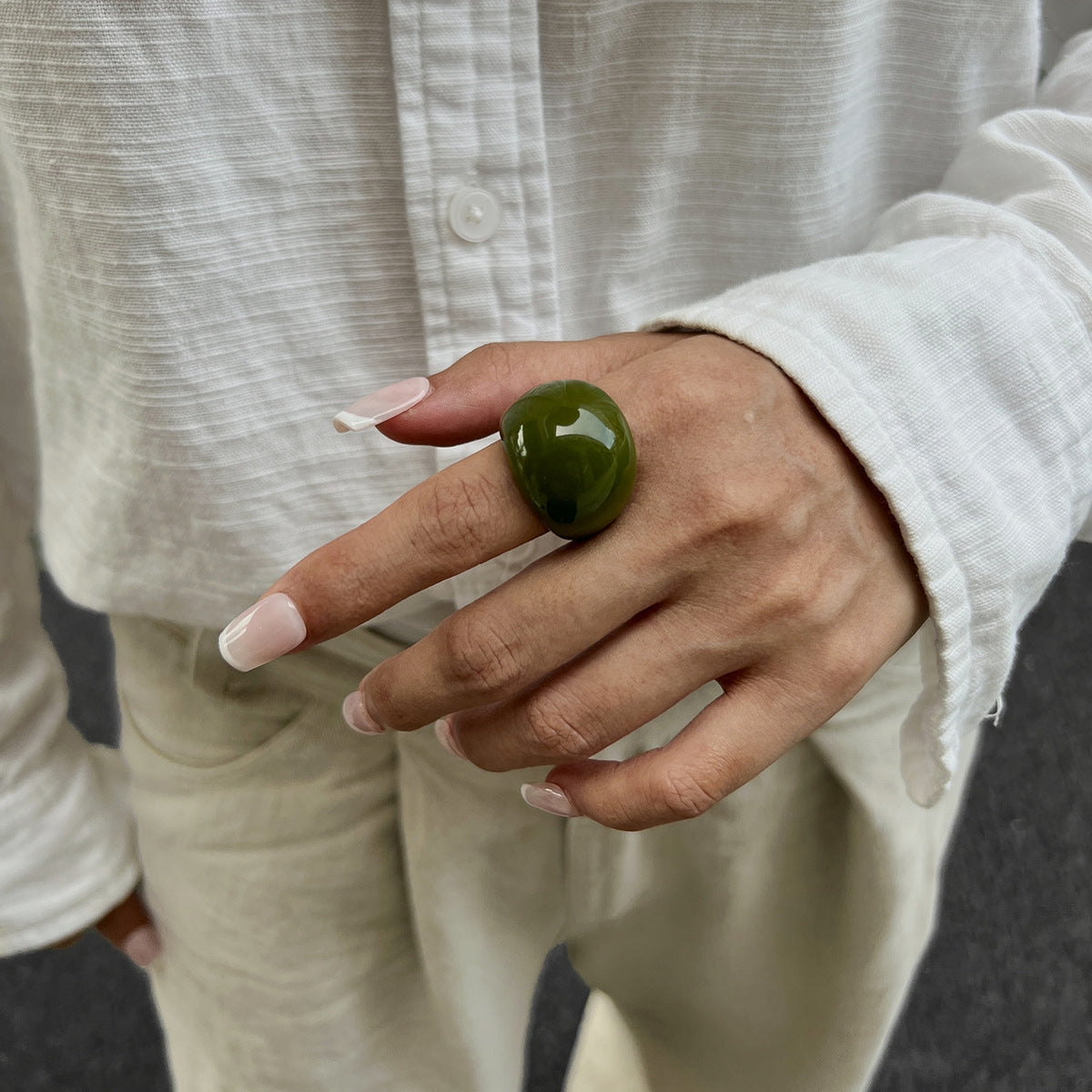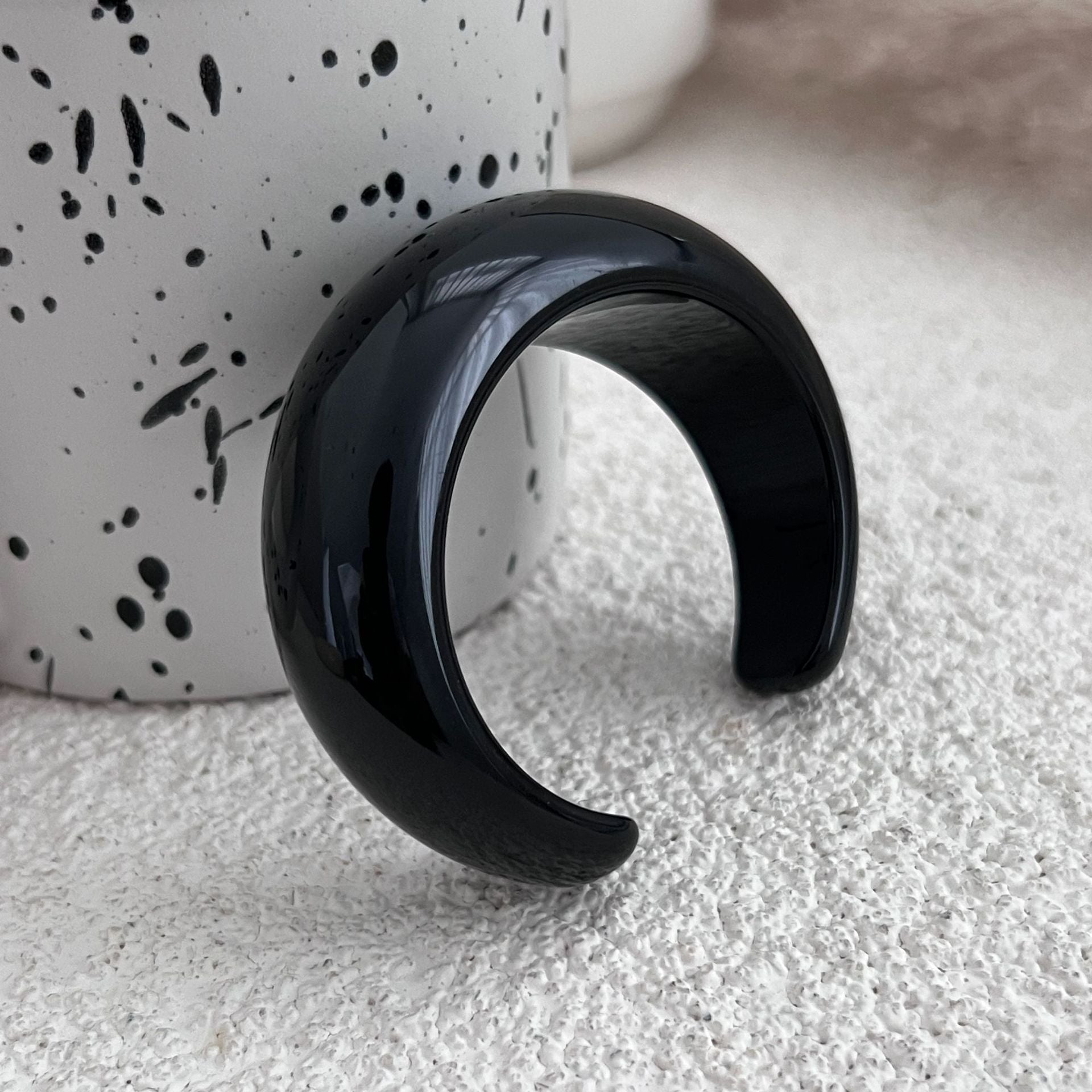 Ensemble au style rétro chic : bracelet ouvert à finition lisse et bague en résine effet “pain” pour une touche artistique et tendance.