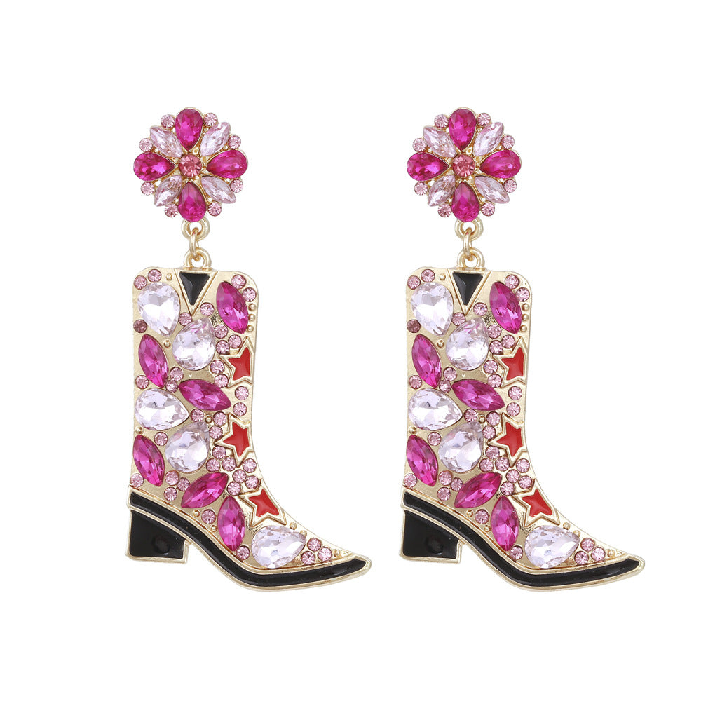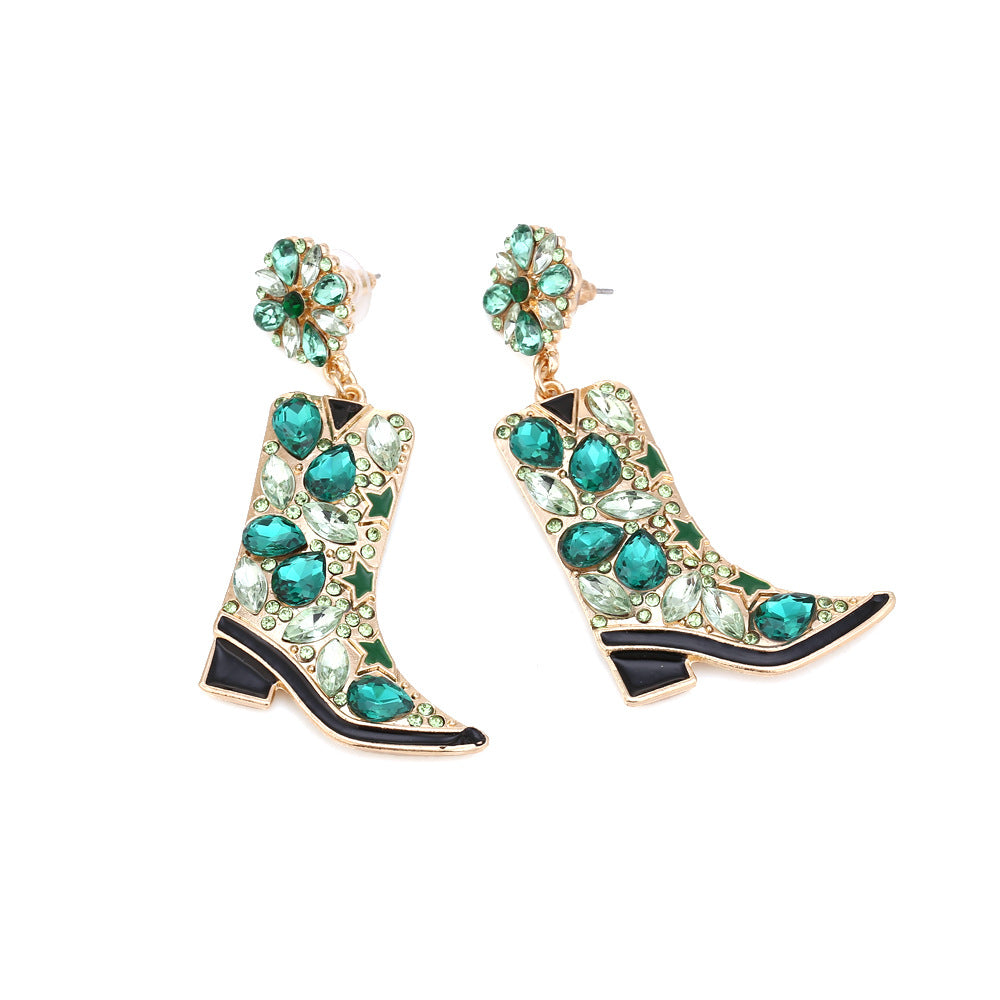 Boucles d’oreilles fantaisie en forme de bottes longues, réalisées en alliage avec un effet émaillé coloré et ornées de strass multicolores en forme de fleurs. Inspirées du style européen moderne, elles reflètent une allure audacieuse et glamour. Parfaites pour les femmes qui aiment les accessoires originaux et pleins de personnalité.
