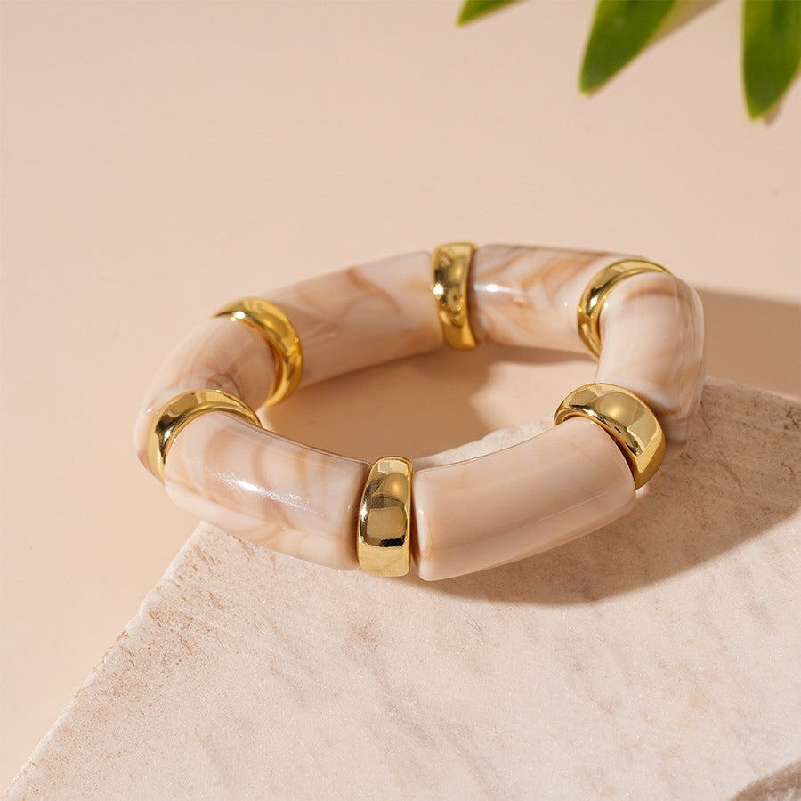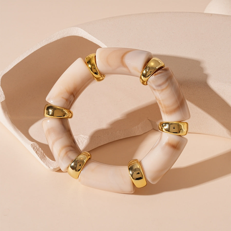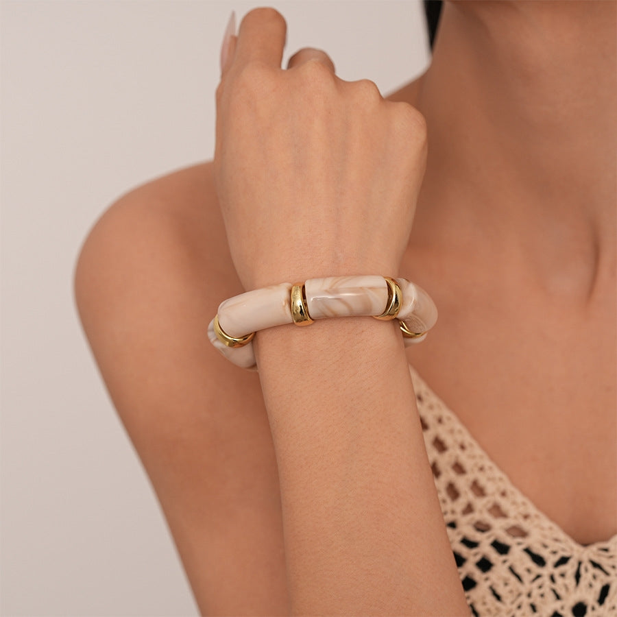 Bracelet élastique en acrylique effet marbré, au design géométrique unique pour une allure chic et raffinée.