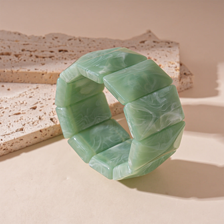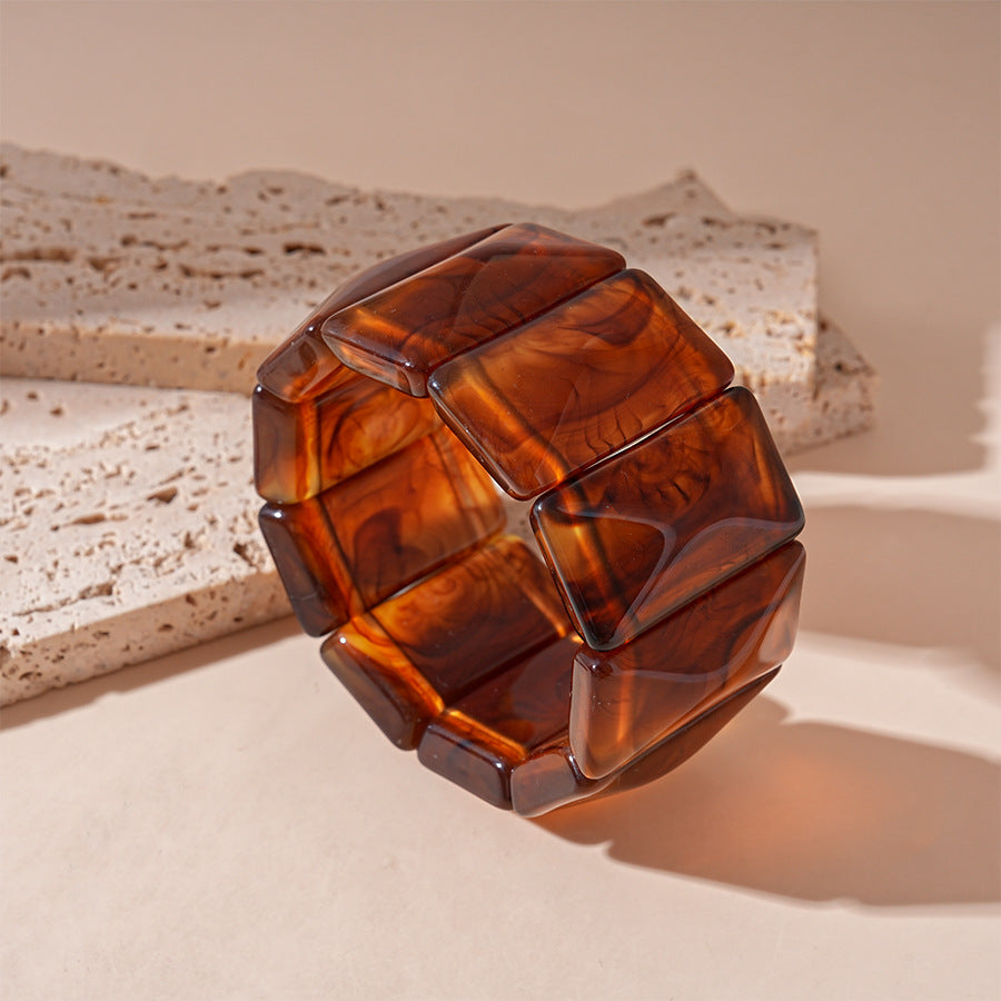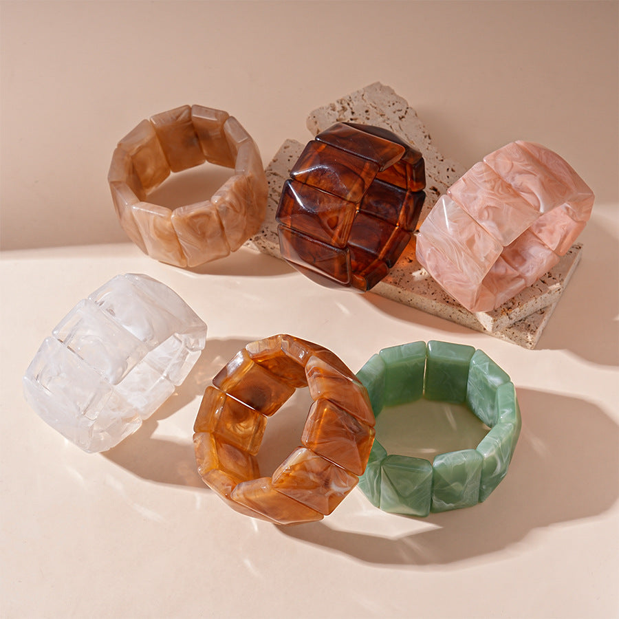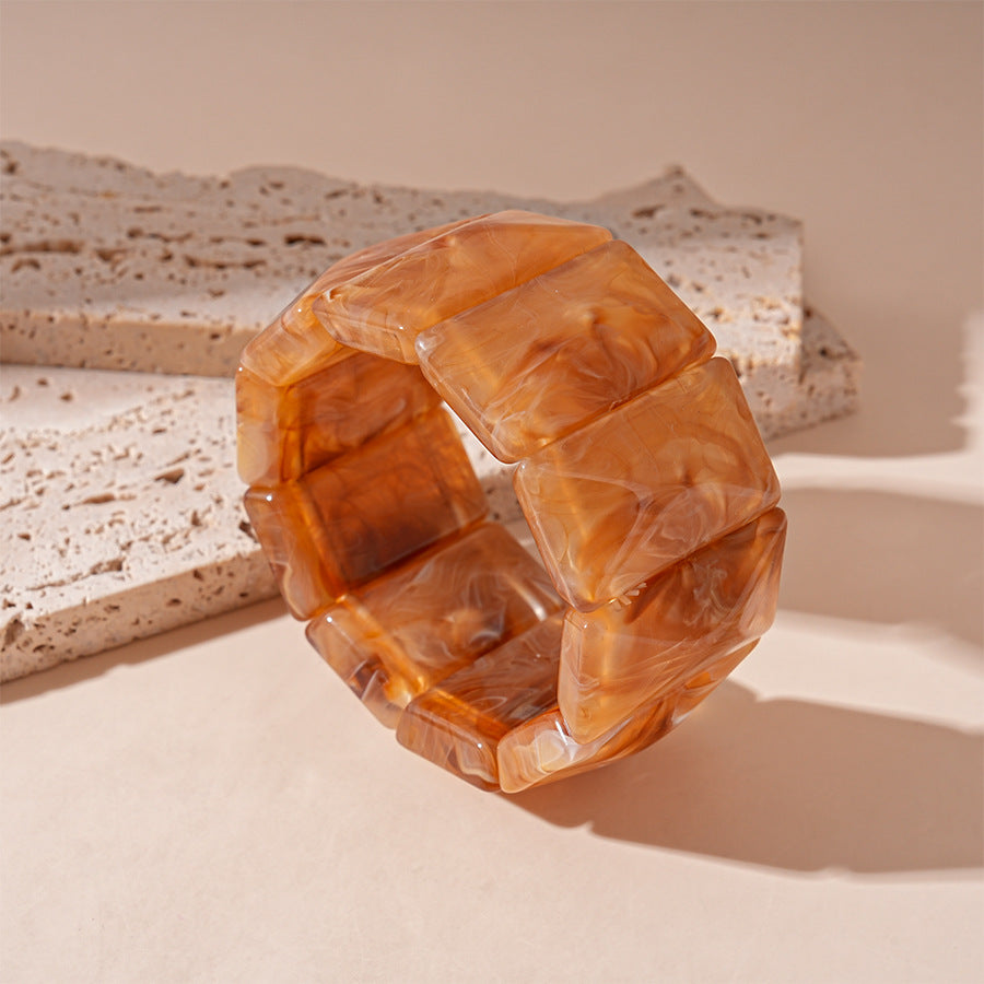 Bracelet géométrique en acrylique au design marbré rétro. Style minimaliste et élégant inspiré de la mode européenne, parfait pour ajouter une touche artistique et raffinée à votre look.