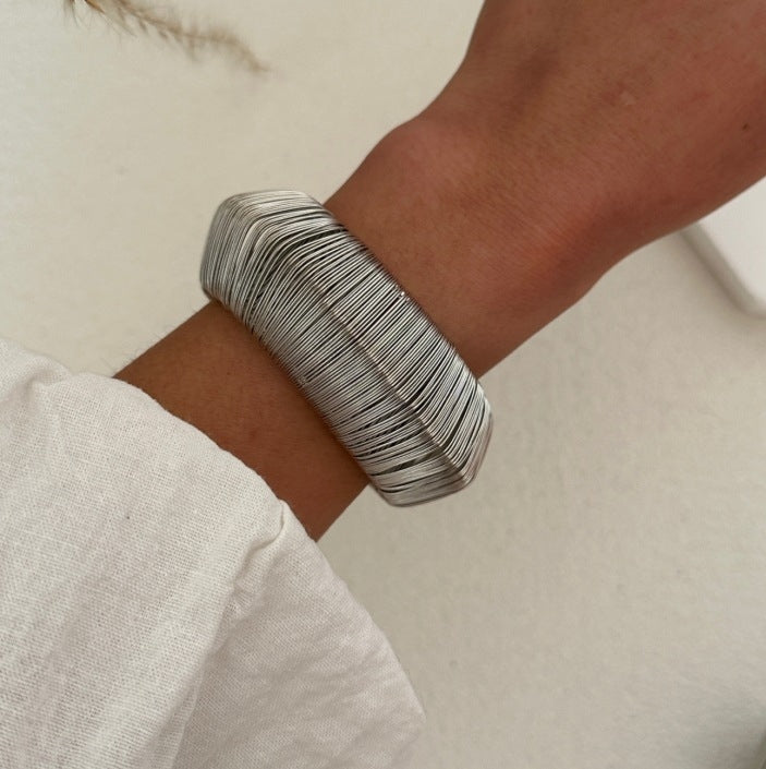 Bracelet C en alliage au fini brossé, design audacieux et original. Petit bijou tendance, parfait pour un style moderne et distinctif.