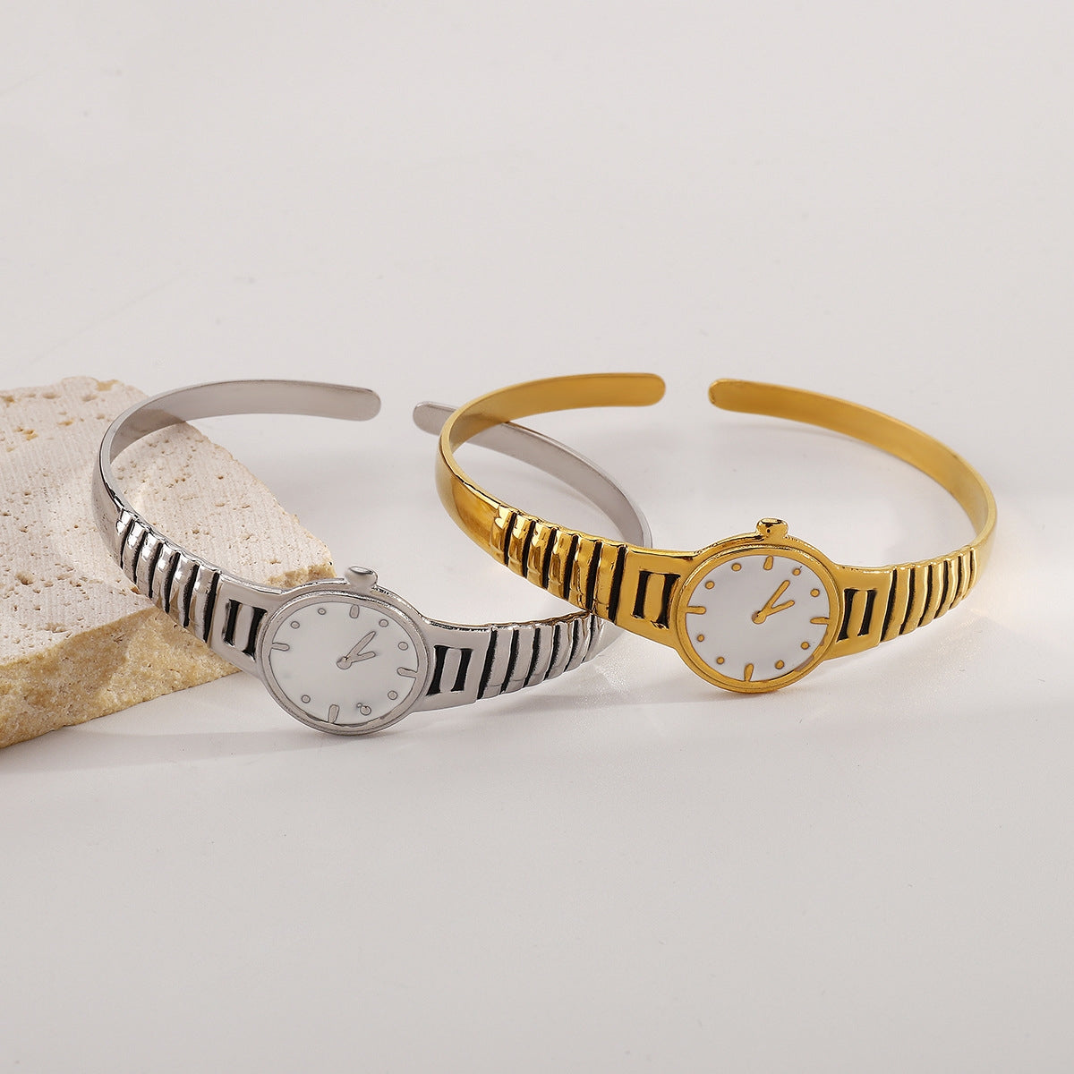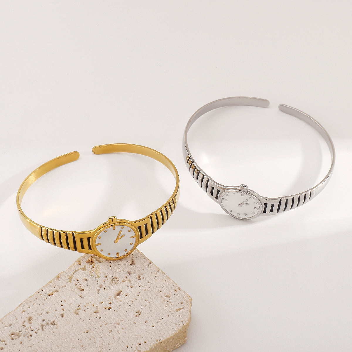Succombez à l’élégance minimaliste avec ce bracelet-montre pour femme en acier inoxydable doré 18K. Conçu pour durer sans ternir, il allie style moderne et raffinement. La finition goutte d’huile apporte une touche brillante et luxueuse, tandis que le design ouvert permet un ajustement confortable à tous les poignets. Idéal pour rehausser votre look au quotidien ou lors d’occasions spéciales.