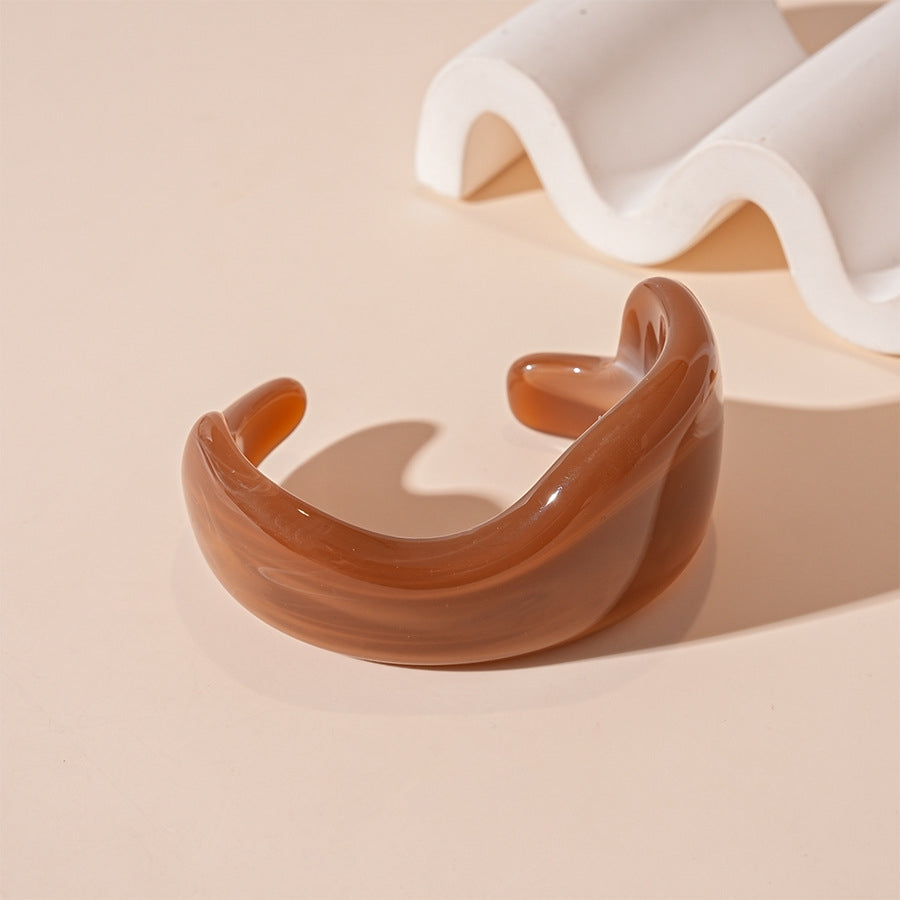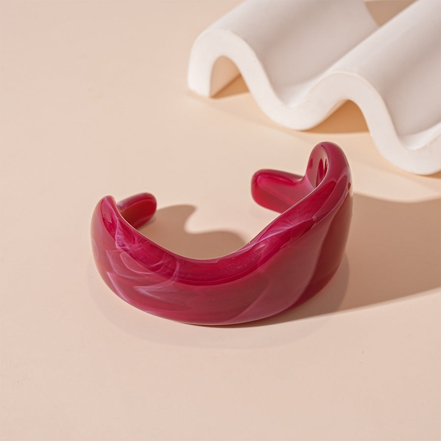 Bracelet ouvert en acrylique effet marbré, au design géométrique irrégulier pour un look audacieux et sophistiqué.