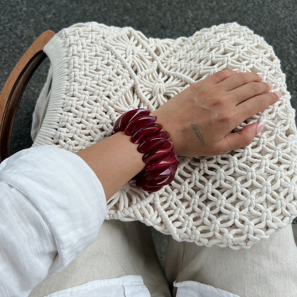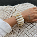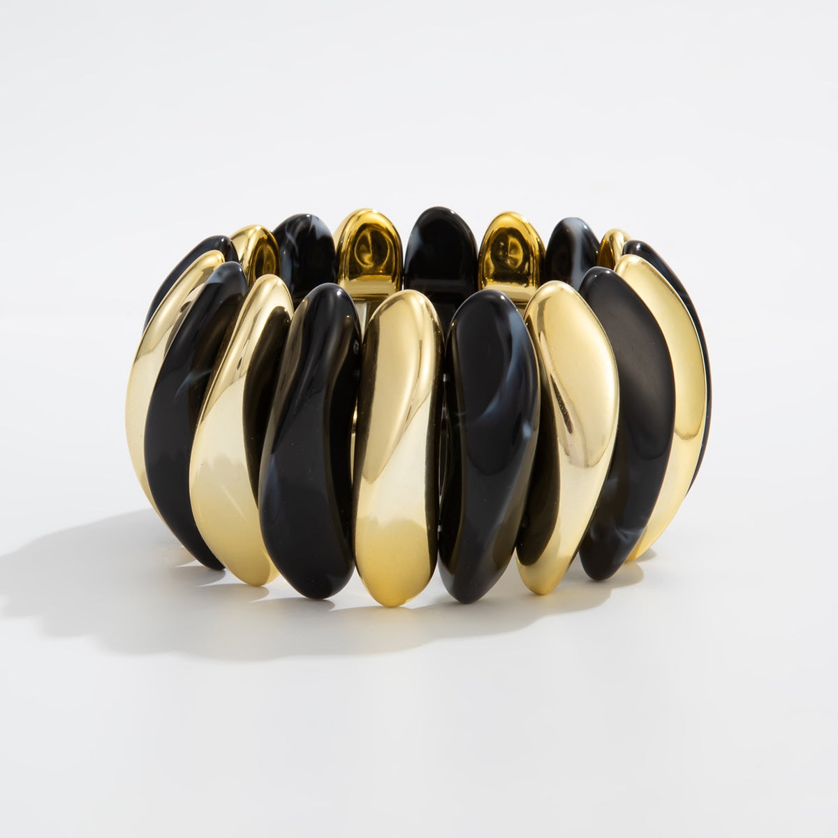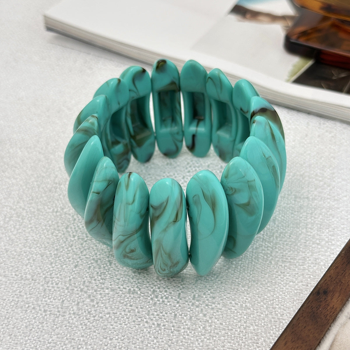 Adoptez un look audacieux avec ce bracelet large en résine, design unique et cordon élastique confortable. Parfait pour un style original et tendance.