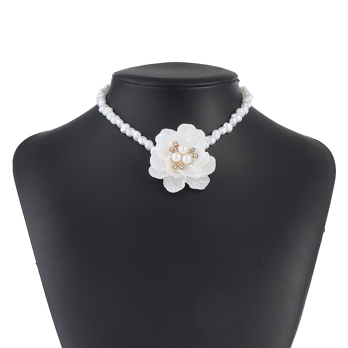 Collier perlé orné d’un camélia en relief, au style français vintage et romantique. Un bijou élégant et raffiné pour sublimer votre allure.