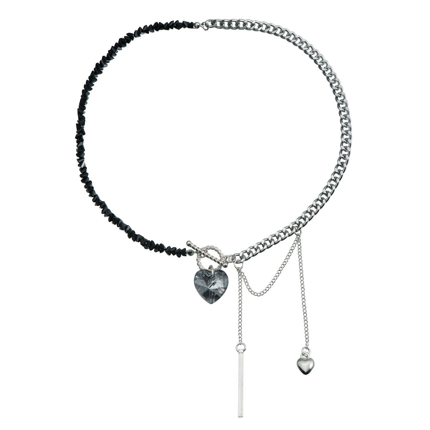 Collier élégant composé de perles en verre cristal et d’un pendentif cœur effet miroir, agrémenté d’un fermoir OT doré. Son design raffiné mêle éclat et modernité, pour un style léger et luxueux. Un bijou tendance parfait pour illuminer vos tenues quotidiennes ou compléter un look sophistiqué.