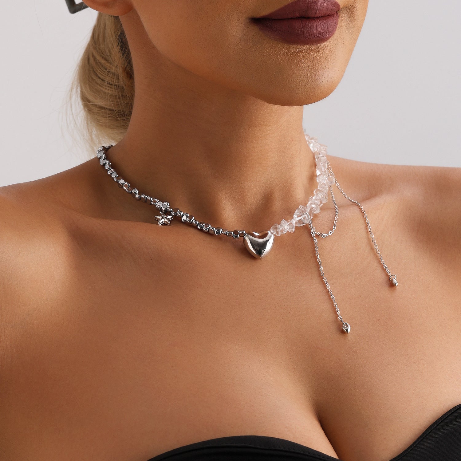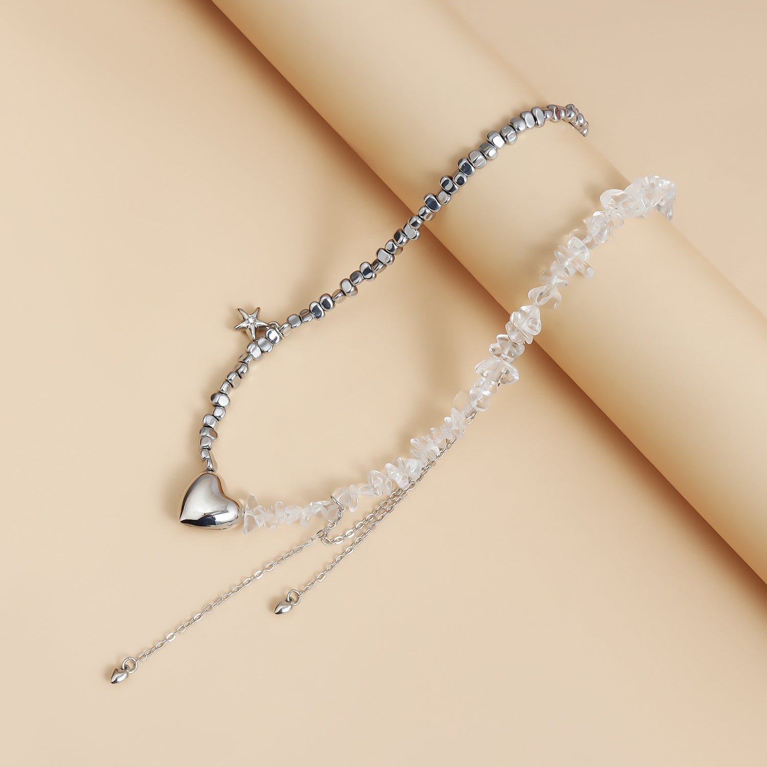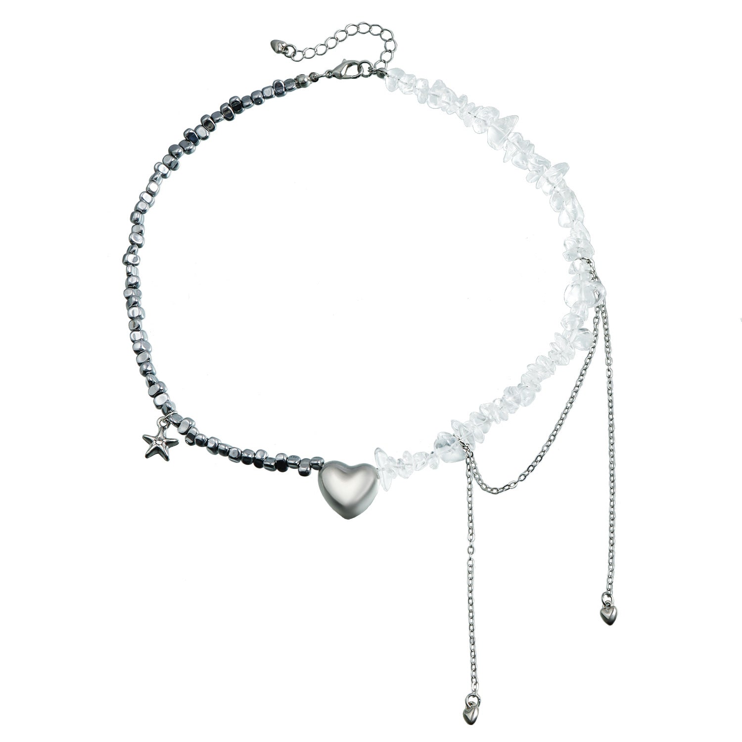 Collier au style INS européen, orné d’un pendentif cœur et d’une étoile de mer délicate avec pampilles fines. Conçu avec des perles en verre et des pierres noires onyx, il allie élégance marine et touche bohème. Un accessoire unique et raffiné, parfait pour sublimer vos tenues d’été ou apporter une note chic et originale à votre look quotidien.