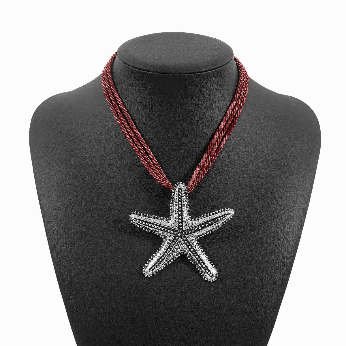 Parure tendance inspirée du style ZA, composée d’un collier à corde rouge et de boucles d’oreilles étoile de mer. Un bijou chic et estival,